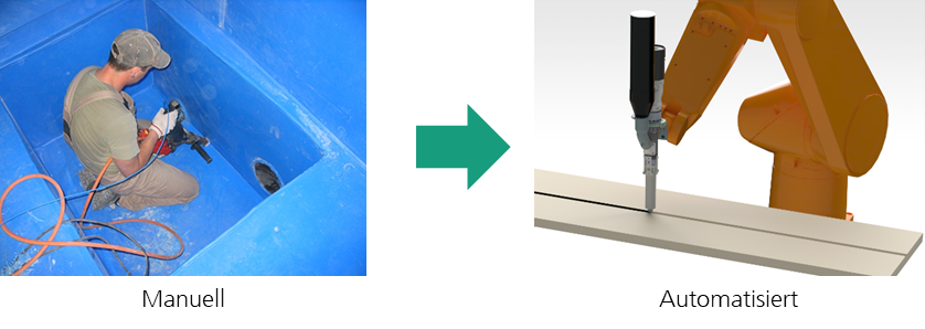 Die Fertigung im Kunststoffbehälterbau ist durch geringe Stückzahlen gekennzeichnet. Bestehende (Offline)-Systeme zur Programmierung von Robotern erweisen sich oft als unwirtschaftlich – daher wird das Extrusionsschweißen im Behälterbau derzeit manuell durchgeführt. Zum Erhalt der Wettbewerbsfähigkeit ist ein steigender Automatisierungsgrad erforderlich. Ziel ist die Untersuchung der Machbarkeit eines innovativen Verfahrens, das es ermöglicht, den Prozess des Kunststoffextrusionsschweißens so zu automatisieren und zu gestalten, dass für den Einrichtvorgang kein Expertenwissen in der Programmierung von Robotern durch den Anlagenbediener notwendig ist. Die Vorteile durch die skizzierte Idee, die bei einer erfolgreichen Umsetzung zu erwarten sind, implizieren einen erheblichen wirtschaftlichen Vorteil, der sich aus einer Reduktion von Personalkosten, Prozessgeschwindigkeit und Qualität ergibt. Im Rahmen des Vorhabens konnten neue Teaching-Verfahren zum intuitiven und effizienten Einrichten von Roboterbahnen konzipiert und evaluiert werden. Der Transfer in die industrielle Praxis erfolgt u.a. durch ein öffentlich gefördertes FuE-Projekt mit Ausrüstungs- und Anwendungspartnern für das Kunststoffextrusionsschweißen und durch ein Spinoff des Fraunhofer IWU (Botfellows).