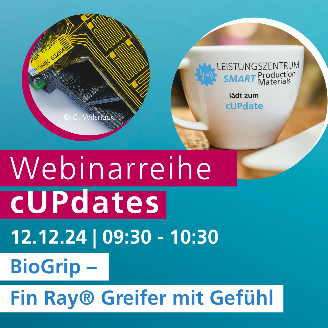 Kurze und informative Impulse aus unseren Partnereinrichtungen bilden den Rahmen der einzelnen »cUPdates«. Dabei widmen wir uns in jedem Termin einem anderen Themenfeld. Sie erhalten Einblicke in aktuelle Entwicklungsprojekte mit Transferpotenzial und können sich zu Fragen rund um die Einführung der vorgestellten Innovationen in Ihrem Unternehmen direkt mit den Expertinnen und Experten unserer sechs Partnerinstitute austauschen. Best Practice Berichte unserer Partnerunternehmen runden die kurzweiligen Termine ab.
