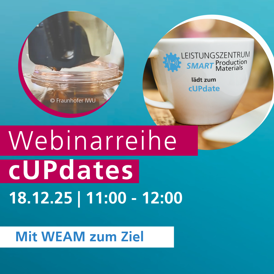 In diesem cUPdate wird die WEAM-Technologie und mögliche Anwendungsfelder näher vorgestellt. Mit der WEAM (Wire-Encapsulating-Additive-Manufacturing) Technologie ist es möglich, vollautomatische Verbindungen von Drahtkomponenten mit verschiedenen Substraten herzustellen. Somit können intelligente, hochintegrierte Bauteile mit Anwendungsbereichen in der Leistungselektronik, Sensorik und Aktorik entstehen. Das Webinar ist für alle interessant, die sich mit dem Thema Werkzeugköpfe und additive Fertigung beschäftigen.