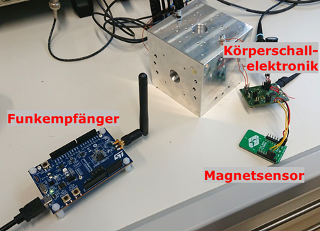 Im Rahmen des Projektes wurden Versuche zur Energieübertragung mittels Körperschall an verschiedenen Versuchskörpern sowie an einer Umformmaschine durchgeführt. Aufbauend aus den Erkenntnissen wurde entsprechende Elektronik zur Körperschallgenerierung als auch -empfang und Energiewandlung zur Versorgung der Sensorik entwickelt. Die Funktion der neuen Sensorik konnte schließlich an resonanten Strukturen nachgewiesen werden.