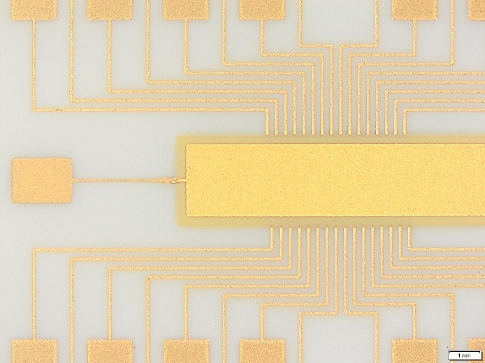 Mit Messverfahren auf der Basis von Ultraschall lassen sich festkörper- und fluidmechanische Größen, Werkstoffeigenschaften sowie Bauelemente- und Systemzustände bestimmen. Piezokeramische Ultraschallsender und -empfänger sind Stand der Technik. Ihr Aufbau erfordert zahlreiche Komponenten unterschiedlicher Werkstoffe und viele Montageschritte. Ihre siebdrucktechnische Herstellung verspricht dagegen Miniaturisierung, höhere Zuverlässigkeit, Kostensenkung und ermöglicht höhere Ultraschallfrequenzen als bisherige Technologien. Es wurden strukturierte piezokeramische Dickschichten auf eigens entwickelten, additiv gefertigten keramischen Substraten mit spezifischen akustischen Dämpfungseigenschaften realisiert. Damit lassen sich beispielsweise vollkeramische Ultraschallwandler für Hochtemperaturanwendungen realisieren. Die Technologie steht für den Transfer in industrielle Anwendungen bereit.