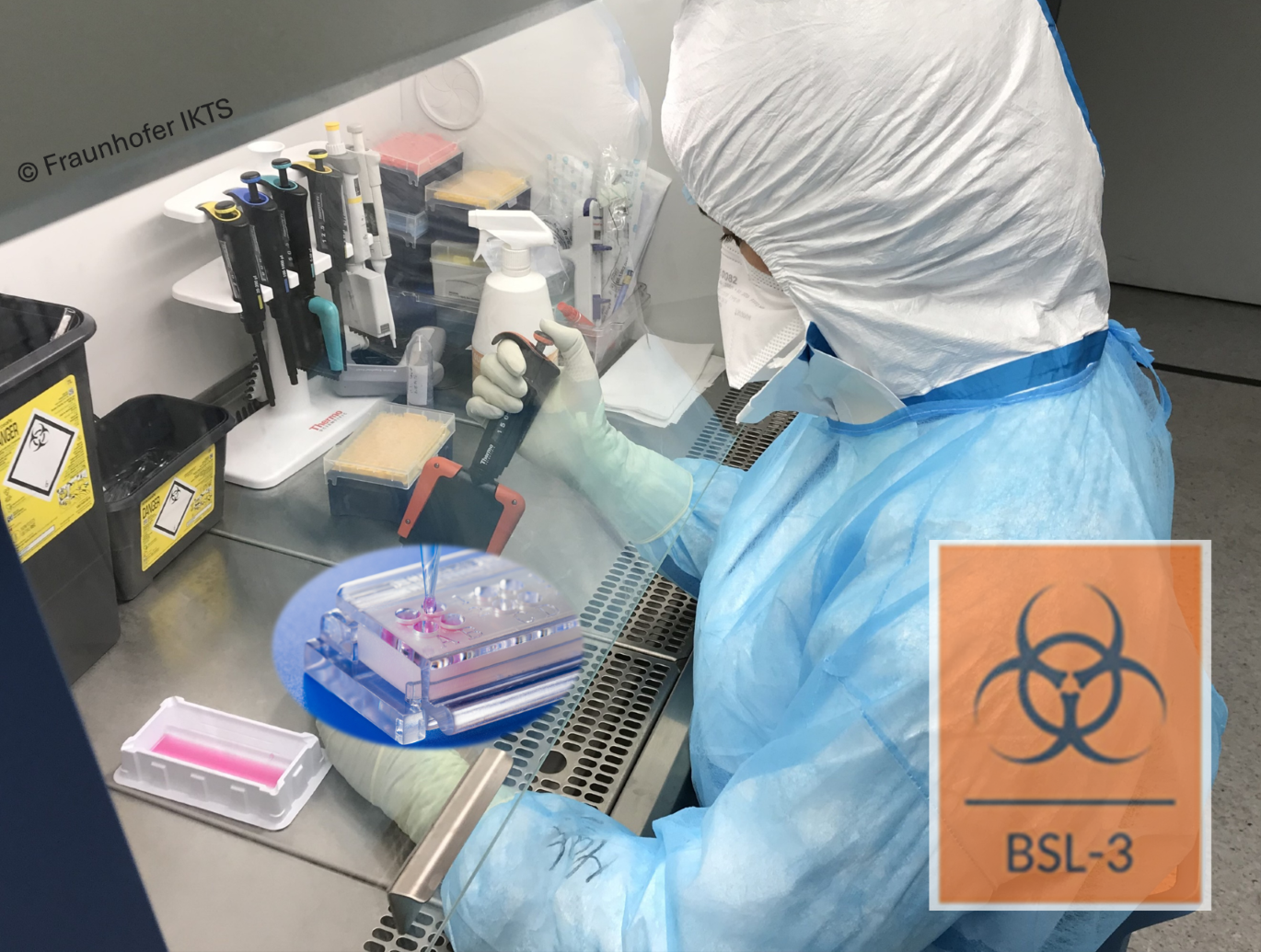 In diesem Vorhaben wird das patentierte und validierte In-vitro-Testsystem „ClicKit-Well“ erstmals für den Einsatz in Laboren der Sicherheitsstufe 3 (S3) erschlossen. Das System ermöglicht eine standardisierte und quantitative Prüfung von Materialoberflächen und wird erfolgreich in Laboren der Sicherheitsstufe 2 eingesetzt. In Kooperation mit dem Institut Pasteur Lille wird untersucht, ob das Testsystem den besonderen Anforderungen hochregulierter, infektiologischen S3-Testumgebungen gerecht wird – hinsichtlich Dichtigkeit, Handhabung und Robustheit. Mit dem erfolgreichen Proof-of-Concept wird der Transfer des Testsystems in ein neues Anwendungsfeld ermöglicht. Dies eröffnet neue Einsatzmöglichkeiten für mikrobiologische Materialprüfungen, bspw. zur Untersuchung von Kunststoffen oder Oberflächen im Kontakt mit Krankheitserregern. Die gewonnenen Ergebnisse tragen zur methodischen Weiterentwicklung/Standardisierung vergleichbarer In-vitro-Testverfahren bei und unterstützen Prüflabore, Forschungseinrichtungen sowie Unternehmen dabei, Materialien unter S3-Bedingungen verlässlich zu untersuchen.