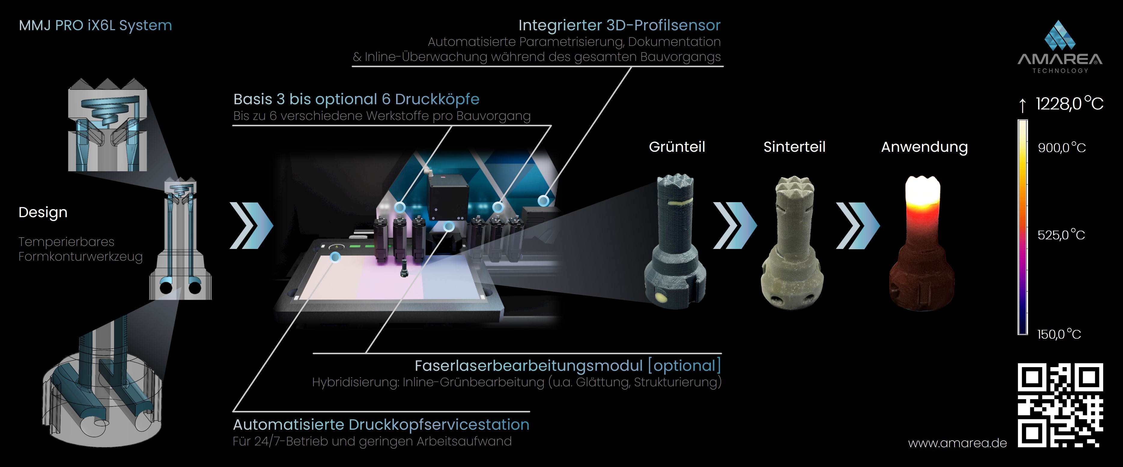 Spezialisiert auf den Multi-Material 3D-Druck, entwickelt und vertreibt die AMAREA Technology GmbH 3D-Drucker, die bis zu sechs verschiedene Materialien, wie technische Keramiken oder Metalle, z.B. für hochfunktionale Bauteile in harschen Umgebungen, kombinieren können. Industrieunternehmen und Forschungsinstitutionen, die innovative, bisher nicht oder nur schwer realisierbare Produkte herstellen möchten, haben darüber hinaus Zugriff auf ein großes Materialportfolio und erhalten Beratung zum Thema Multi-Material Additive Manufacturing.
